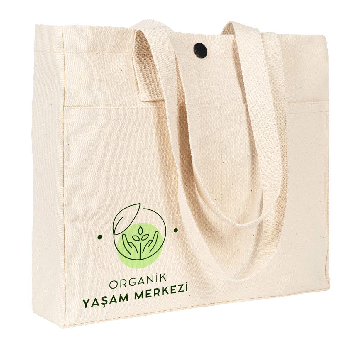 Printed Canvas LUX Tote Bag – Snap Button & Front Pockets – 18" × 16" × 4" (35 × 40 × 10 cm), Thick 10 oz Cotton