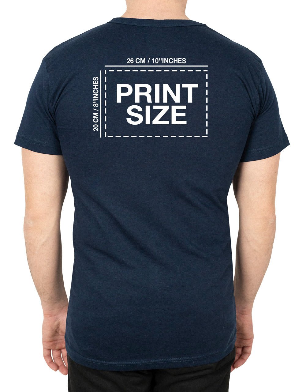 - The maximum print area size for a T-shirt is 10x10 cm. Print is available at additional charge for a larger print area. Full floor printing (using up to 0.5cc paint) can be printed at additional cost for your work. You can receive support from our account representatives to ensure your design is full floor.