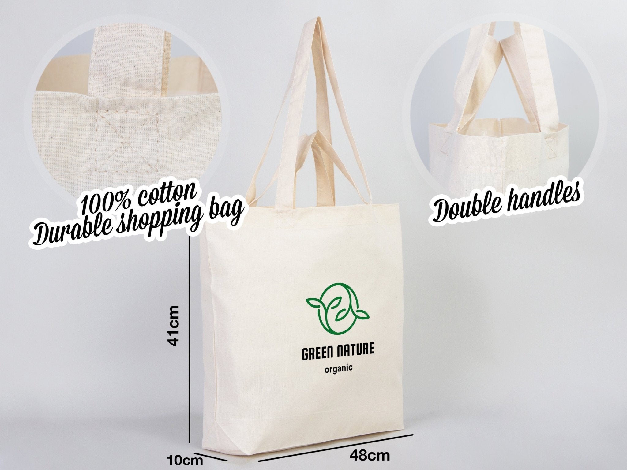 Raw Cotton Shopping Tote Bag – 19"W x 16"H x 4"D Reusable Market Bag