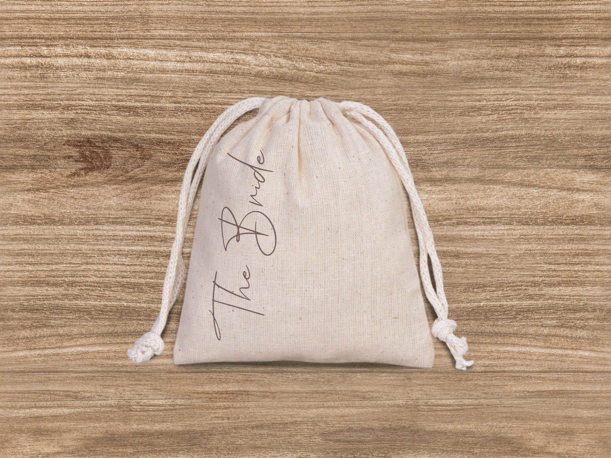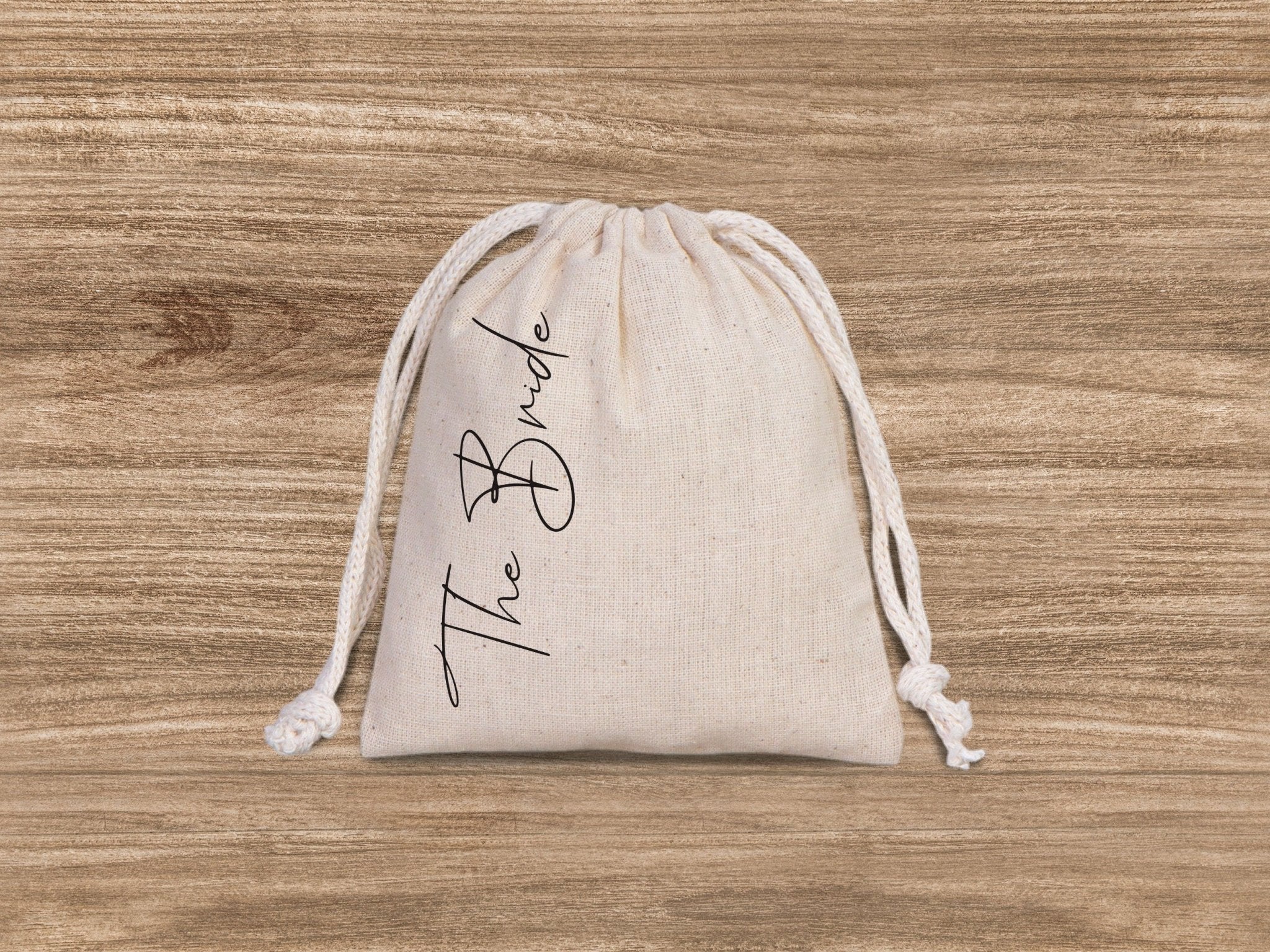 The Bride Bag, Wedding Tote for Bridal Party Cotton Pouches & Wedding Welcome Gifts