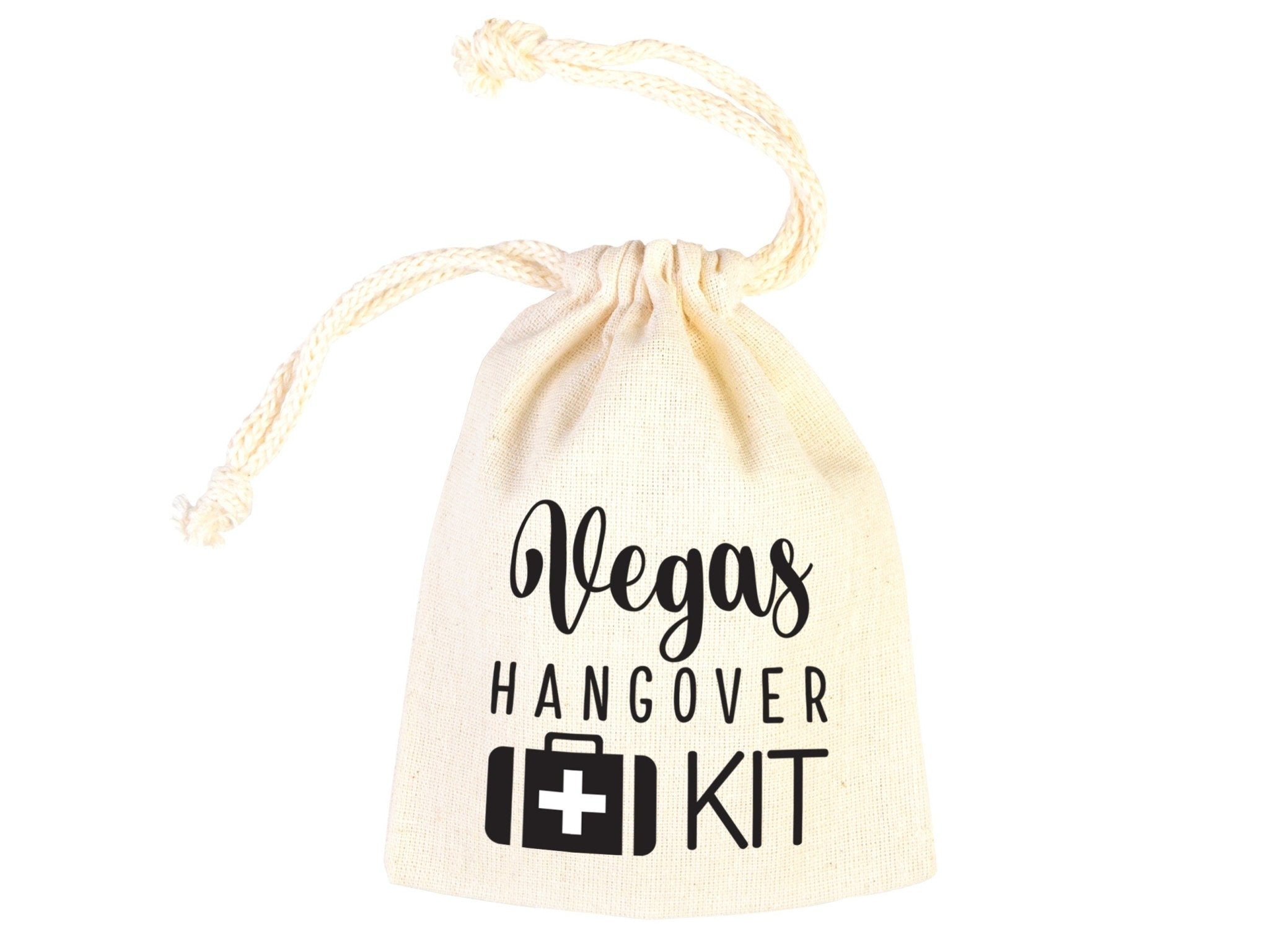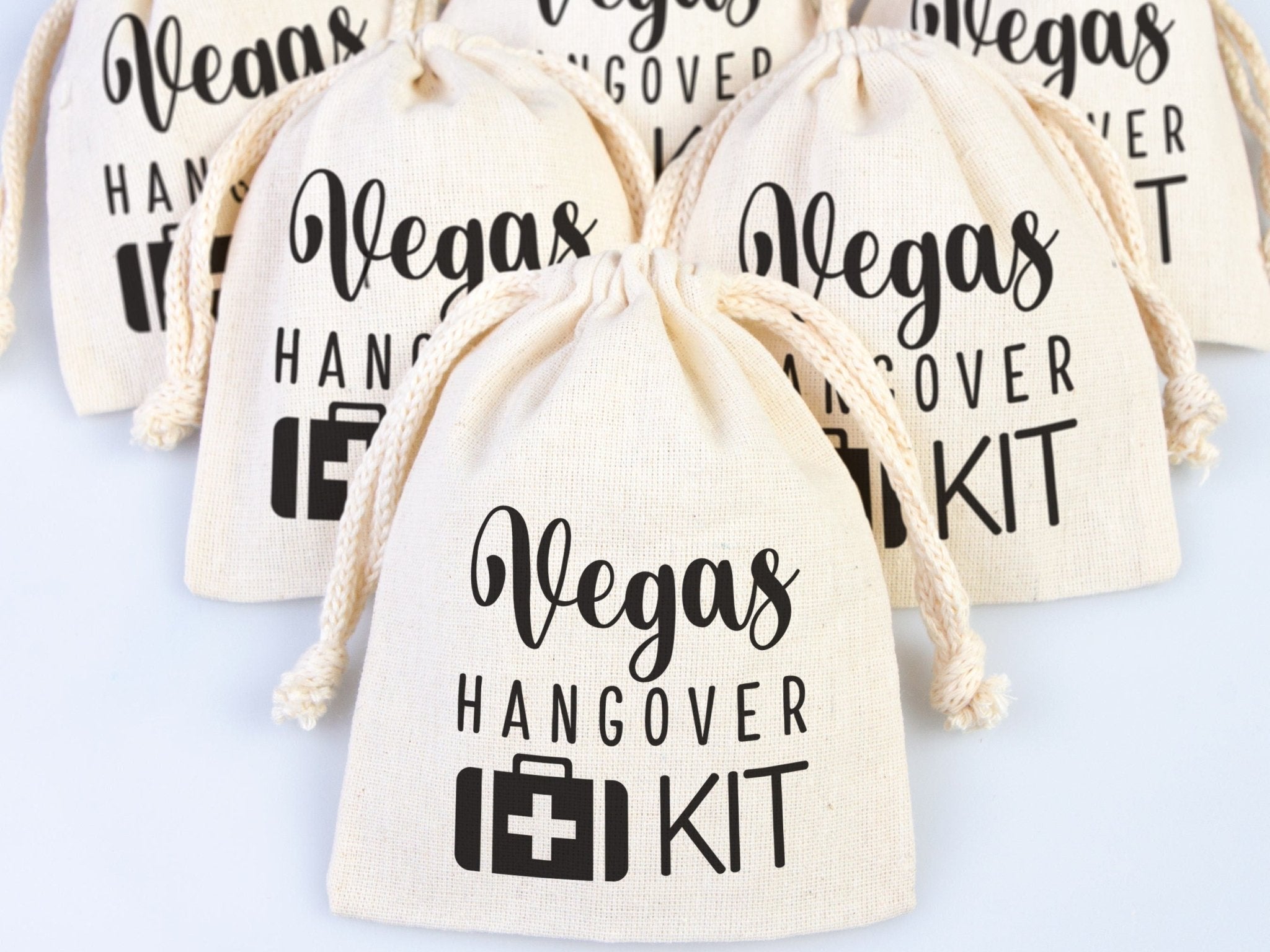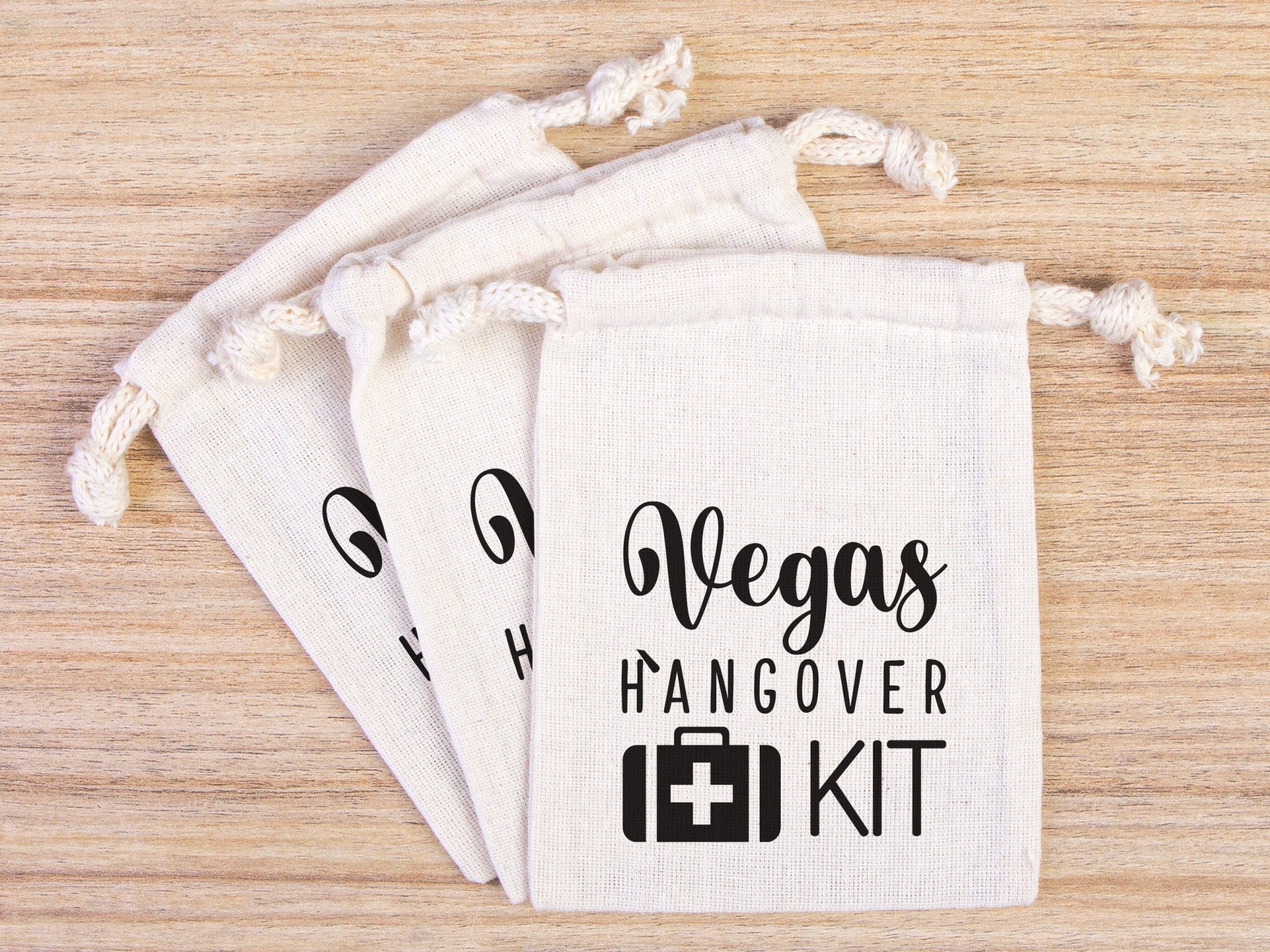 Vegas Hangover Kit Bags – Personalized Cotton Drawstring Party Favor Pouches