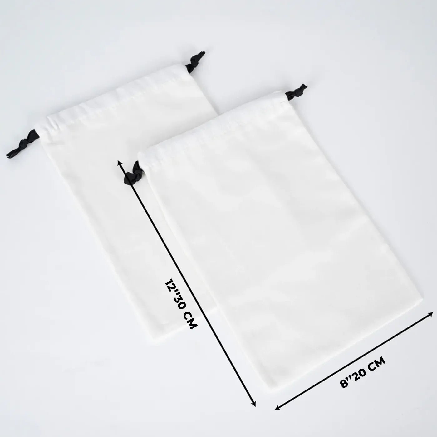 White Canvas Drawstring Bag – Black Cord - 8" × 12" (20 × 30 cm)