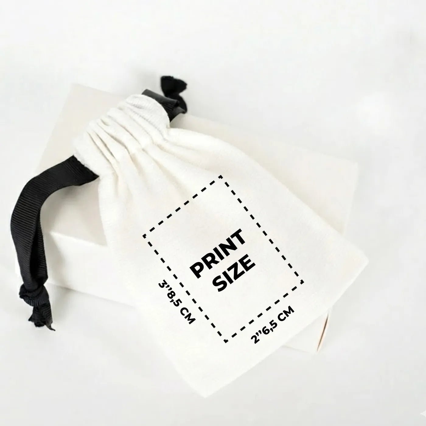 Custom White Cotton Sock Gift Bag – Black Drawstring - 4" x 5" (10×13 cm)